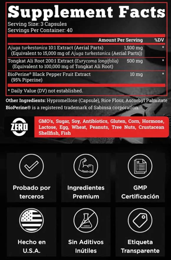 Turkesterone + Tongkat Ali es la combinación natural que activa la síntesis de proteínas, mejora la energía, el estado de ánimo y la recuperación muscular sin alterar tus hormonas ni forzarte a usar químicos peligrosos.